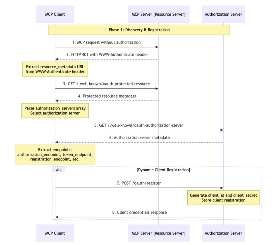 The final preparatory step involves the client registering itself with the authorization server to obtain OAuth credentials. This dynamic registration process, defined by RFC 7591, transforms what traditionally required manual intervention into an automated flow. The client sends its registration details, including its name, redirect URIs, and requested capabilities: